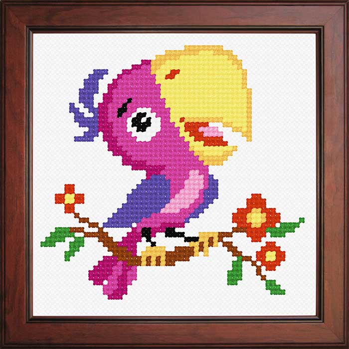 Рисунок на тканині 15×15 см «Папуга», артикул O·1265 поставляется только оптом в пачках по 25 шт. Каждая работа пакуется в пластиковый пакет с европодвесом. Для обеспечения наилучшей цены в набор не включается дорогостоящая полиграфия.